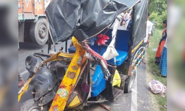तीन जिंदगियां खत्म, ऑटो के टुकड़े बिखरे